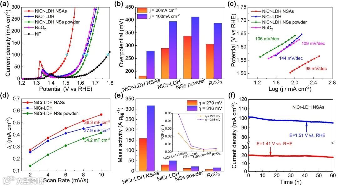 图3. NiCr-LDH NSAs的OER电催化性能。