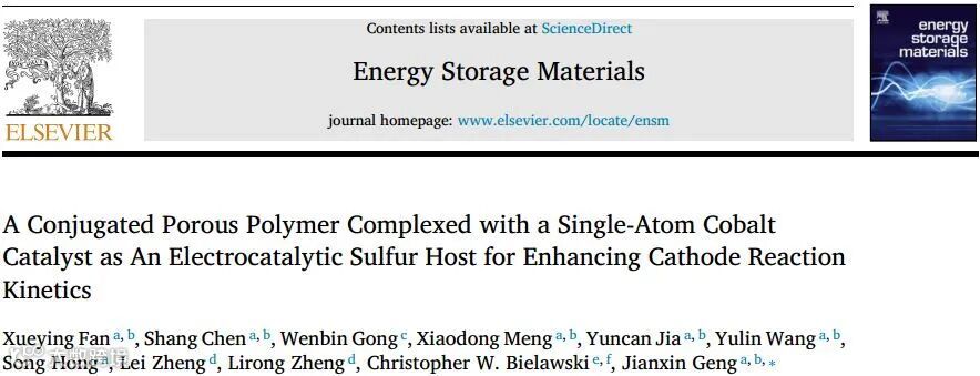 耿建新教授, ESM观点:共轭多孔聚合物络合钴单原子的电催化剂可以有效提升硫正极的反应动力学 科学材料站