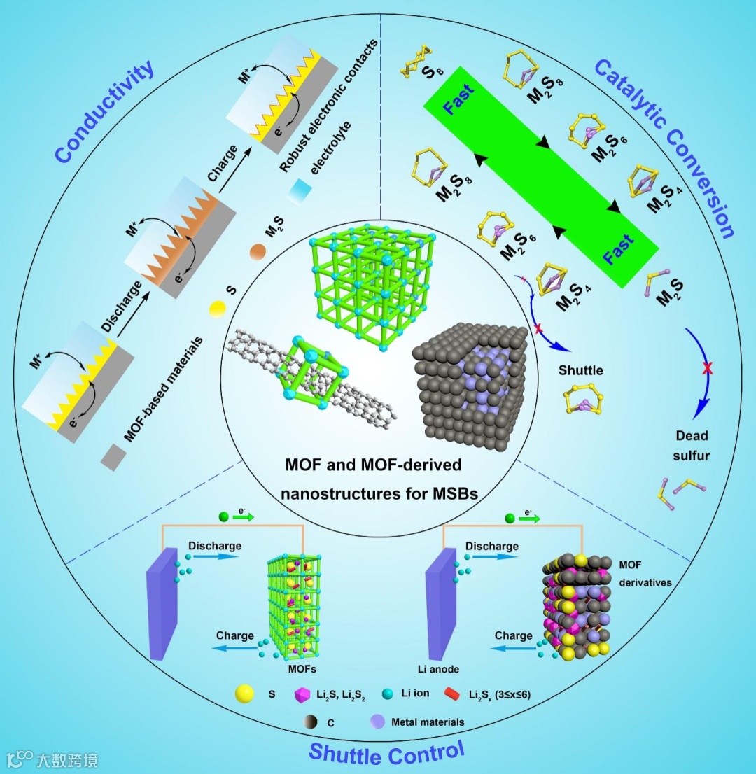在最有潜力的MOFs纳米结构中,导电且具有多个开放金属位点的MOFs是非常理想的材料,不但牢固地限制多硫化物,还能加快金属-硫电池的反应动力学。