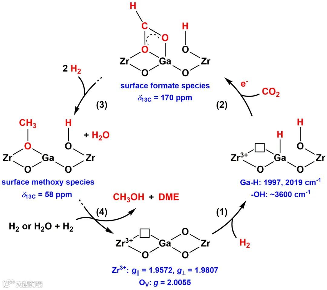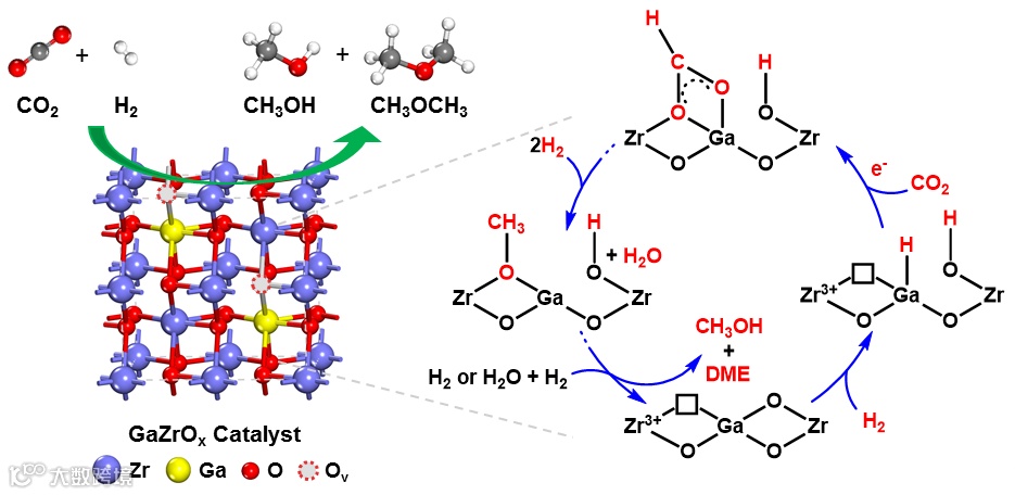 机理 1. GaZrOx催化剂催化CO2加氢制甲醇和二甲醚的机理。