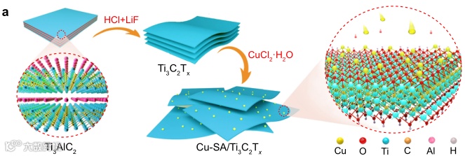 要点一:该工作表明铜单原子被成功地固定在Ti3C2Tx纳米片(Cu-SA/Ti3C2Tx)上,并首次被用作碳氧化合物的催化剂。