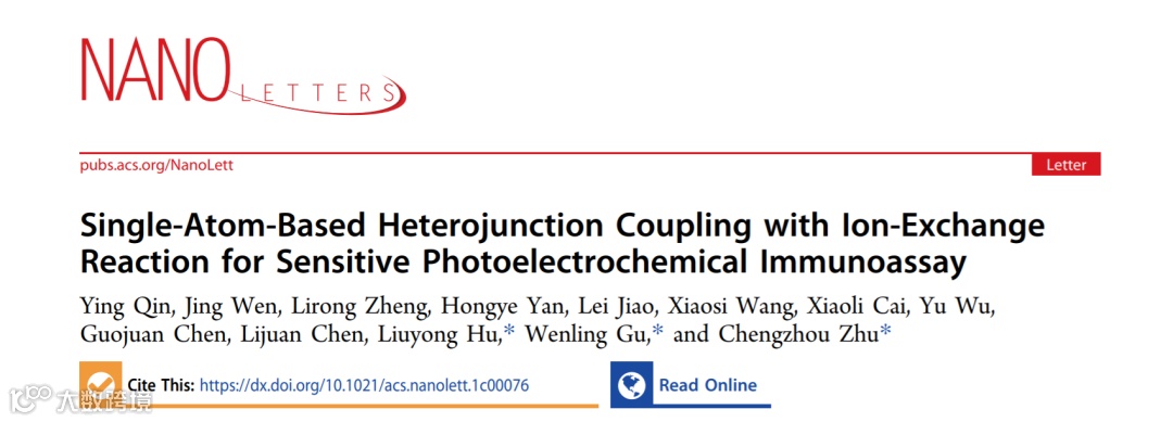 胡六永副教授、顾文玲副教授,朱成周教授 Nano Letters观点:单原子异质结与离子交换反应耦合用于灵敏光电化学免疫分析