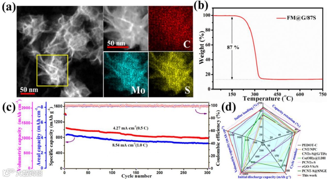 金属相硫化钼纳米花/石墨烯纳米片复合材料助力长寿命高体积能量密度锂硫电池