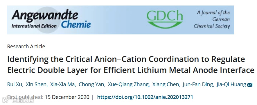 近日,北京理工大学黄佳琦等在国际期刊Angewandte Chemie上发表题为“Identifying the Critical Anion−Cation Coordination to Regulate Electric Double Layer for Efficient Lithium Metal Anode Interface”的研究工作。