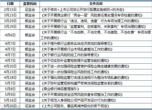 自2016年12月中央经济工作会议定调以来,金融监管围绕“去杠杆、降风险”全面展开,银监会、证监会、保监会相继发布监管条令。“严监管”成为影响今年上半年国内资本市场的重大因素。