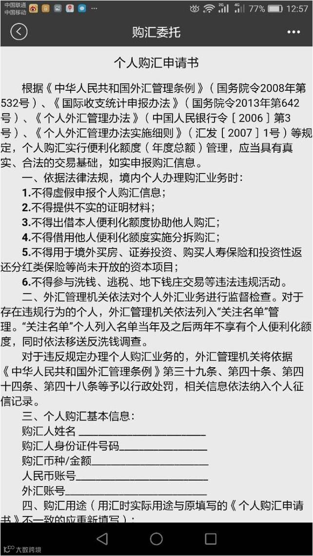 但元旦期间,国内多家媒体报道称:虽然2017年居民5万美元购汇额度并未缩减,但却迎来了更复杂的购汇流程,以及更严格的购汇用途监管。比如,银行购汇时首先要填《个人购汇申请书》,上面明确指出,“境内个人办理购汇时,不得用于境外买房、证券投资、购买人寿保险和投资性返还分红类保险等尚未开放的资本项目。”