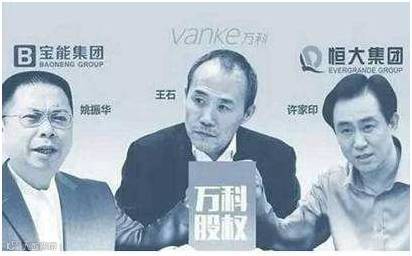 作为国内房地产行业标杆的万科,由于股权结构分散,很容易成为资本觊觎的“肥肉”。2015年起,“宝能系”就开始在二级市场上扫货万科,当年12月已是万科第三大股东。为防止“宝能系”入侵,王石绕过第一大股东华润,向深铁求助。当宝万大战正酣之时,恒大又半路杀出,大举买入万科股份,持股比例提升至14.07%。万科股权之争陷入胶着。
