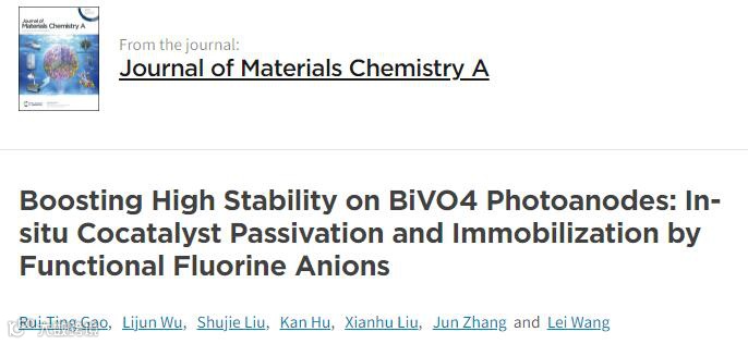 内蒙古大学|王蕾&张军 JMCA:电解液中F-助力原位催化剂形成及表面钝化提高BiVO4半导体抗光腐蚀性能 科学材料站