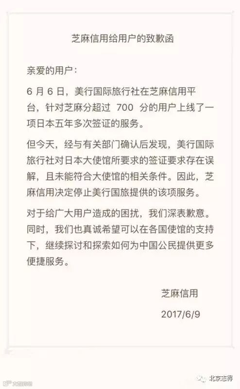 芝麻信用表示,对用户造成的困扰深表歉意,同时也希望得到各国使馆的支持,继续探讨和探索如何为中国公民提供更多便捷服务。