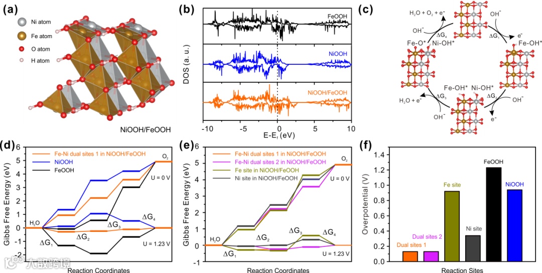 (2)NiOOH与FeOOH之间的强电子耦合效应有利于电子/电荷传输;