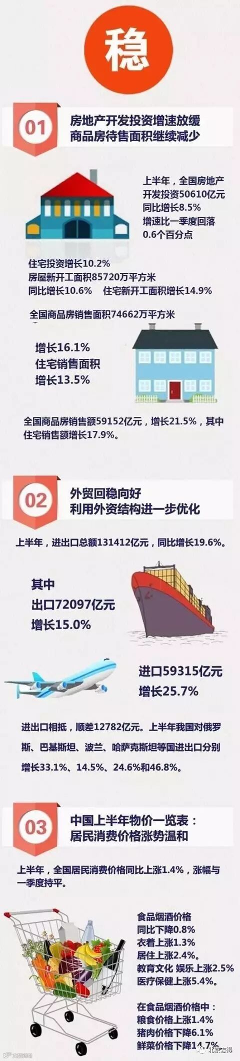 17日,国务院新闻办公室举行发布会,国家统计局公布了2017年上半年国民经济运行成绩单。发言人邢志宏表示,上半年经济运行保持在合理区间,稳中向好态势趋于明显。概括上半年经济运行的特点,可以用三个字来概括:稳、好、优!