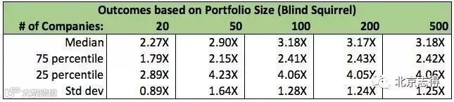 如果你正处于投资种子阶段,而且是一个普通的投资者(在交易流程和选择经验方面没什么突出的地方),然后主要目标是最大限度地提高资金回报,那你至少需要100家公司的投资组合才能收获3倍回报。