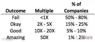 他在自己发表的文章中概述了一系列种子期的投资典例。我们也可以从许多公开发表的风险回报数据中得出一些变化趋势,如CrunchBase、PitchBook之流。