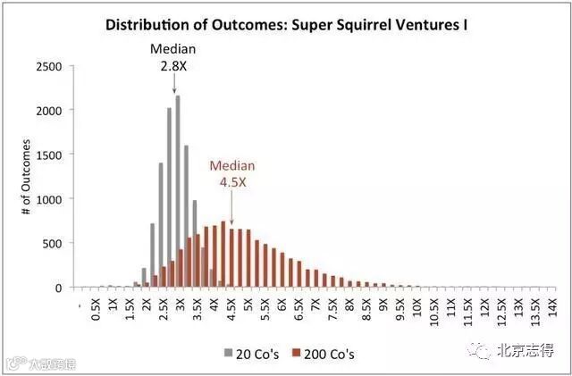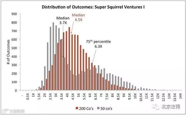 在20家公司的投资组合里,往往有1%的回报为零。但在200多家公司的投资组合里,每一次组合迭代时,肯定会有好几个50倍回报的。