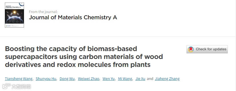 哈尔滨工业大学 JMCA: 利用木材衍生物碳材料和来源于植物的氧化还原分子提高生物质基超级电容器的容量 科学材料站