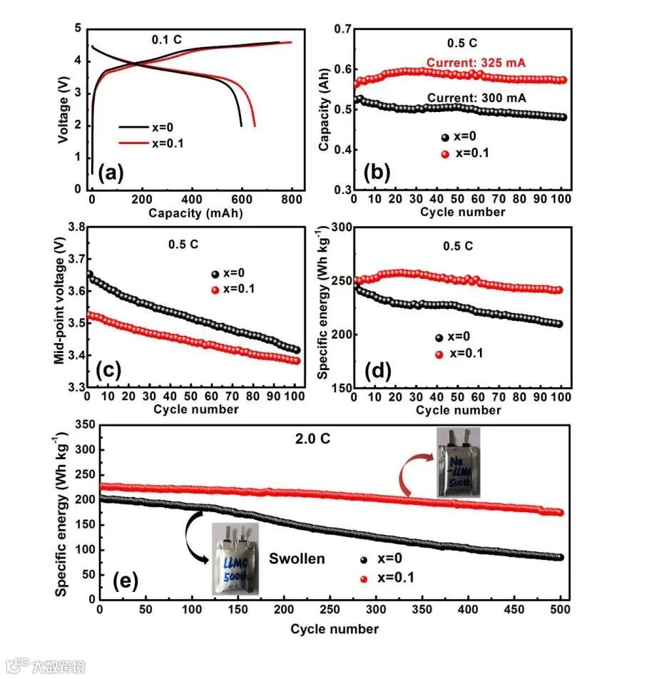 (1)在约3.2V的还原峰100个循环后Na0.1-LLMO电极移动最小(0.19V),这表明其电压衰减最小。