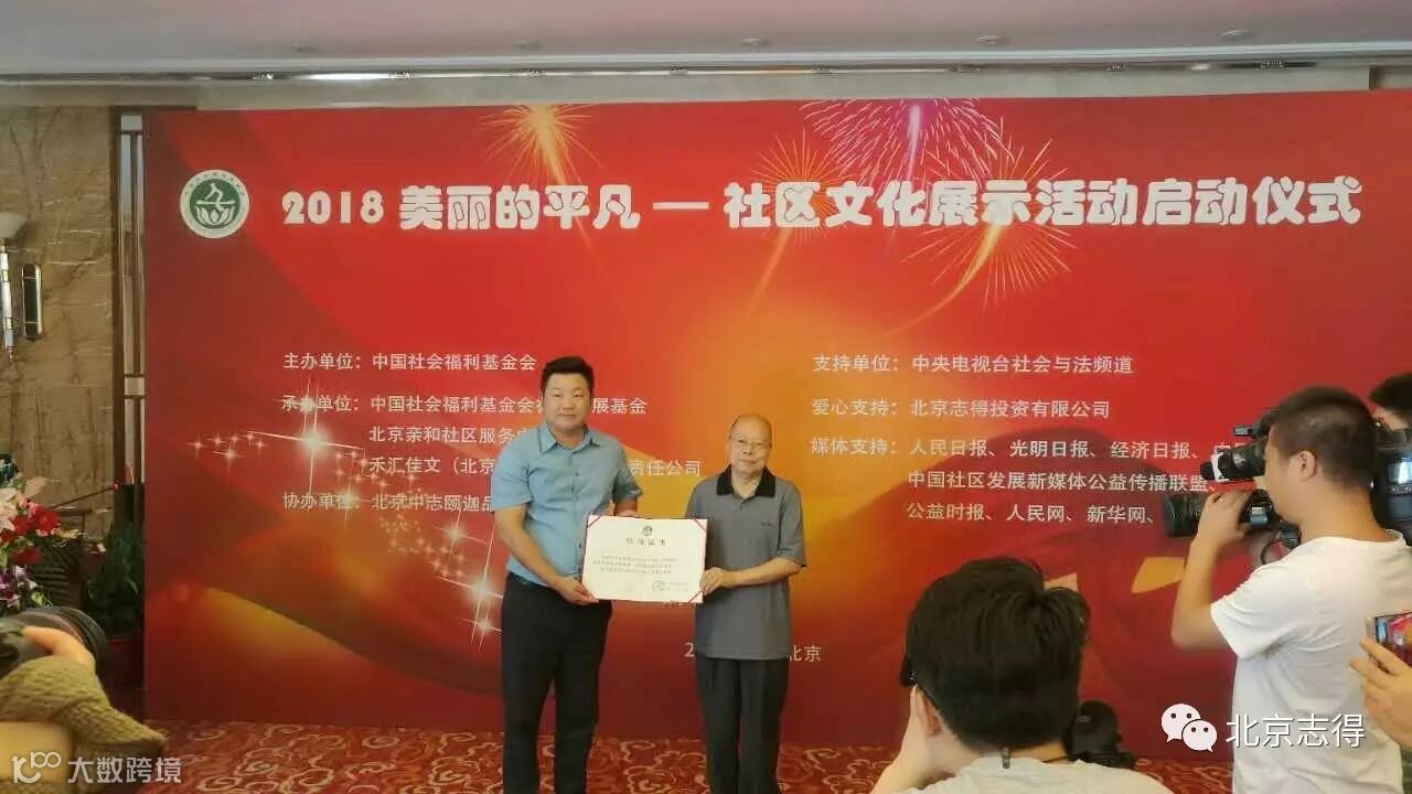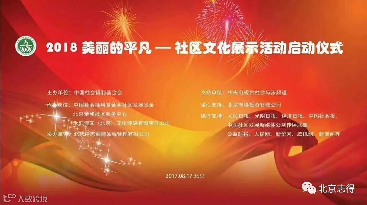 为宣传我国社区文化建设成就,激发全社会参与社区建设的热情,促进社区和谐发展。8月17日上午9:30-11:00,由中国社会福利基金会主办的2018“美丽的平凡—社区文化展示”活动启动仪式在全国人大会议中心举行。