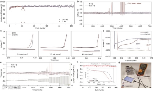 图4,锌沉积性能测试和全电池性能表征