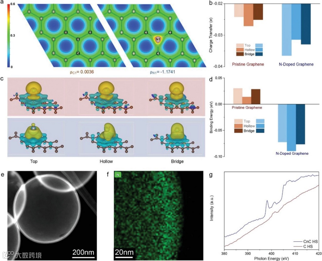 要点二:球差电镜的元素分布和X射线近边吸收精细结构表征证明了空心球中氮位点的存在。