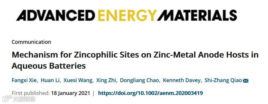 阿德莱德大学|乔世璋教授 AEM:水性电池中锌金属负极基体上亲锌位点的反应机理 科学材料站