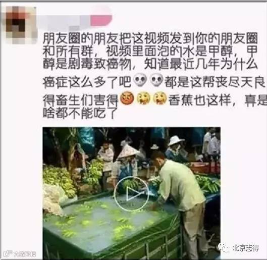 朋友圈中有人传播消息称,有商家用不明乳白色液体浸泡香蕉,疑似为甲醛。