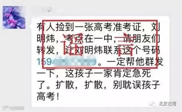 几乎每年的高考前夕,朋友圈都会热传这样一类消息:某某某的高考准考证丢了,拾到者打这个电话139******,或者有人捡到高考准考证,有认识的朋友,赶快联系159******