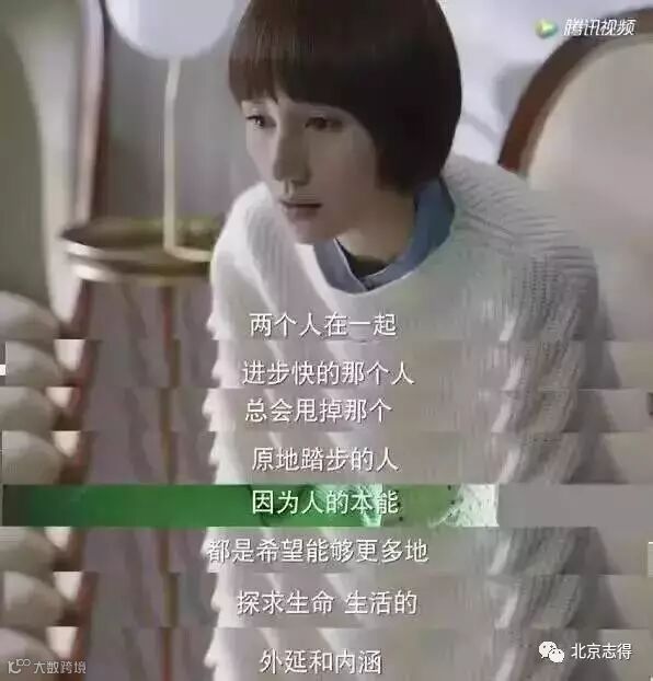 就像婚姻,如果一方努力着,进步着,另一方却原地踏步,长此以往,两个人渐渐丧失了对话的兴趣,也就将两个人的距离越拉越远,婚姻危机的概率越来越大了。