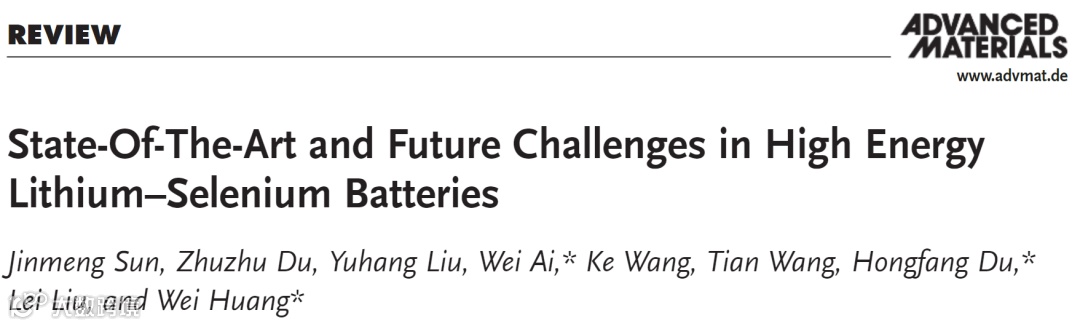 近日,来自西北工业大学的黄维院士与艾伟教授团队,在国际知名期刊Advanced Materials上发表题为“State-Of-The-Art and Future Challenges in High Energy Lithium–Selenium Batteries”的综述文章