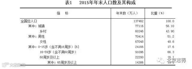 表中显示,截至2015年底,中国的60岁以上人口已经到达总人数的16.1%,而65岁以上人口已经达到了10.5%,这一数据已经远远高于联合国制定的老龄社会化指标。这就意味着我们国家已经进入到老龄化的社会。