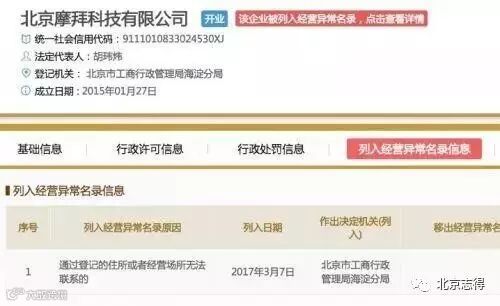 近日,国家企业信用信息公示显示,摩拜单车被列入“经营异常名录”,原因是“通过登记的经营场所无法取得联系”。不过,它的办公点确实发生了变化。