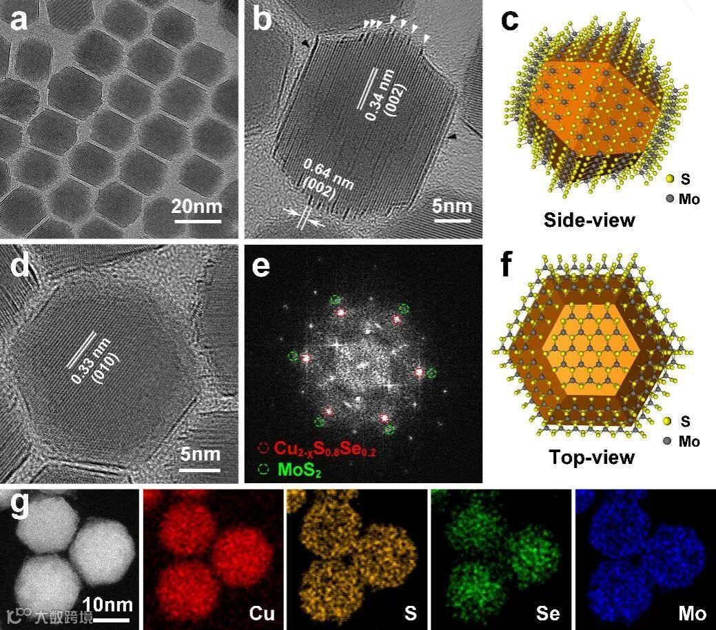Cu2−χSySe1−y晶体中S/Se的比例可以通过调整十二硫醇以及二苯基二硒醚的比例来进行系统性调整,并且MoS2的生长密度可以通过控制注入钼源的多少来调节。