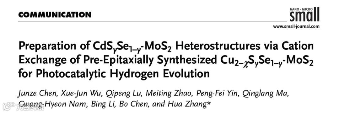 张华教授, Small文章:一锅法制备Cu2−χSySe1−y-MoS2外延异质结构及其作为模板制备CdSySe1−y-MoS2 科学材料站