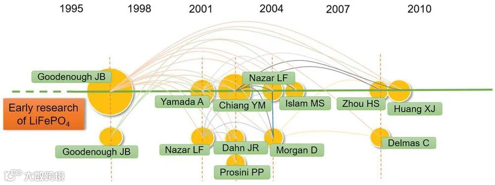 要点三:MatKG可以为不同领域的研究人员提供快速而客观的学术界趋势跟踪,我们以LiFePO4为例,利用建立好的知识图谱框架,对其进行自动化分析,关联相关学者及其研究信息,建立用于锂离子电池的LiFePO4的发展里程碑图。