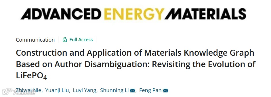 潘锋教授Adv. Energy Mater. :基于作者消歧的材料知识图谱的构建与应用:回顾LiFePO4的发展史 科学材料站