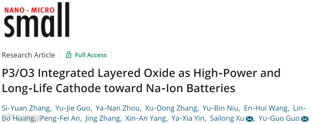 徐赛龙教授、郭玉国研究员 Small:P3/O3共生层状氧化物作为高功率、长循环钠离子电池正极材料