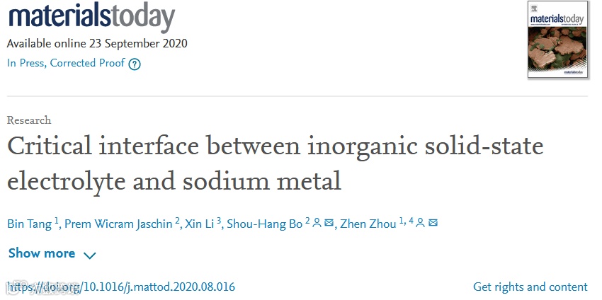 薄首行/周震教授Materials Today:无机固态电解质和金属钠之间的关键界面 科学材料站