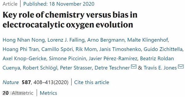 Nong, H.N., Falling, L.J., Bergmann, A. et al. Key role of chemistry versus bias in electrocatalytic oxygen evolution. Nature 587, 408–413 (2020). https://doi.org/10.1038/s41586-020-2908-2