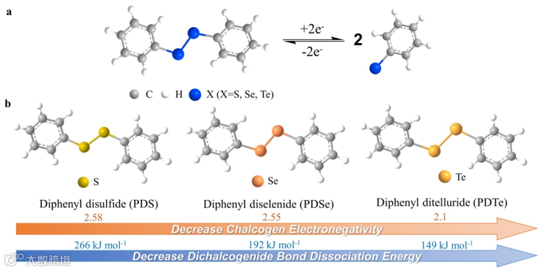 导读:该文章提出了一种新型的低电势、快速动力学的阳极电解液用于非水系液流电池,并对有机硫族化物的电化学性能做了系统性的研究。