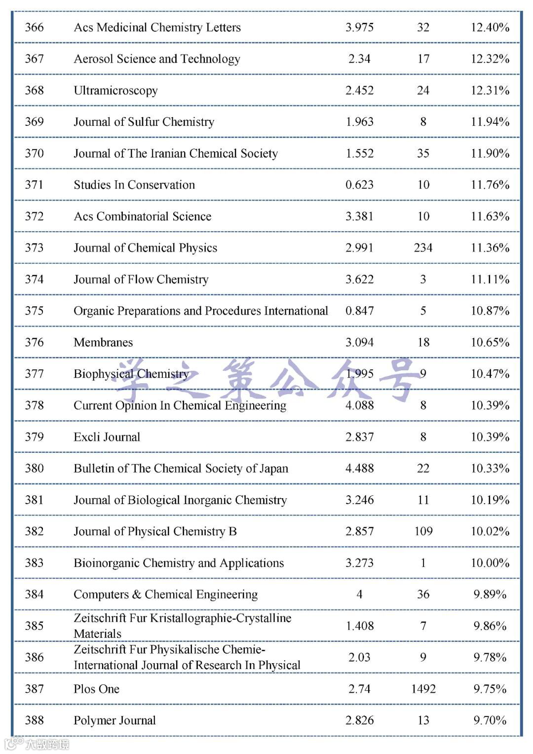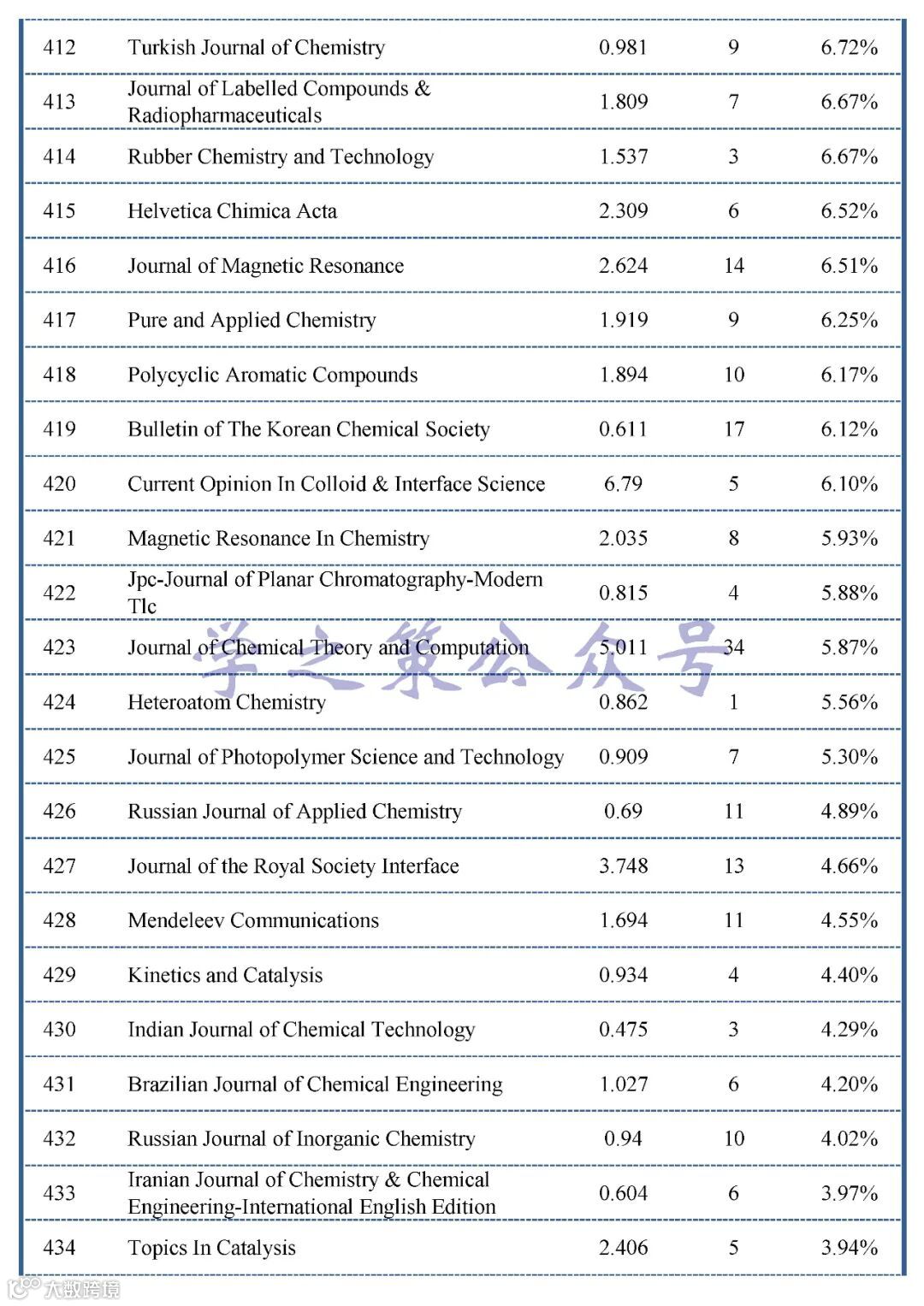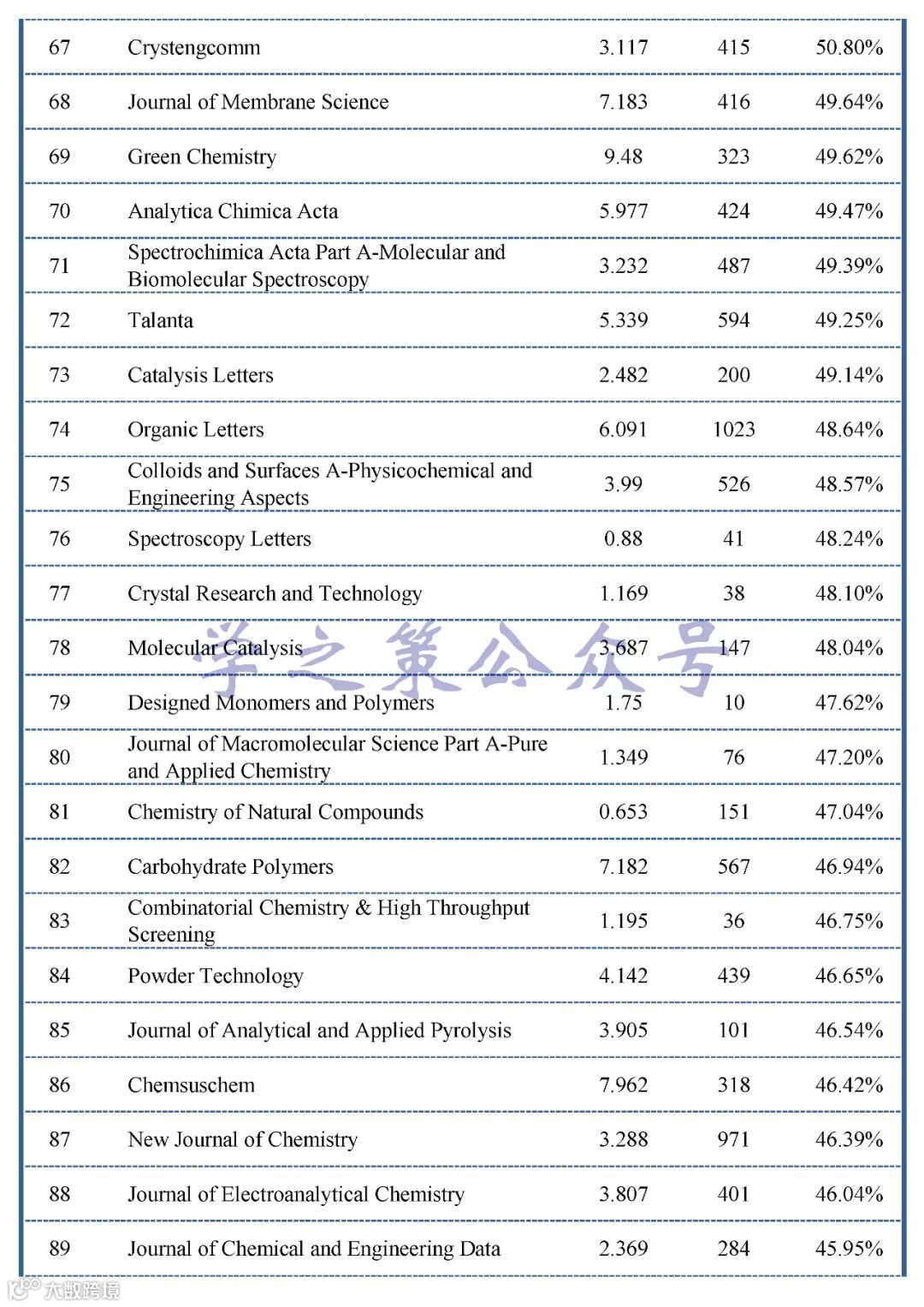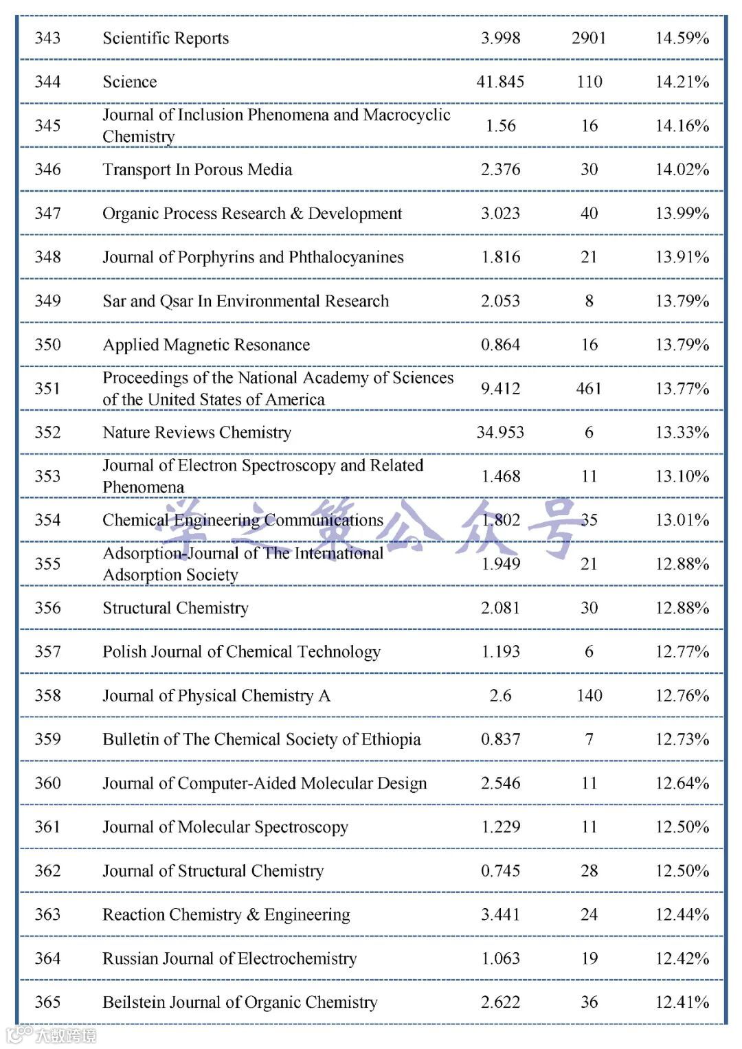 一些国人比较关注的期刊,Applied Catalysis B-Environmental为67%,JCIS为60.47%,Chem为51.72%,CSR为44.81%,EES为39.93%,Angew为39.47%,JACS为29.64%。