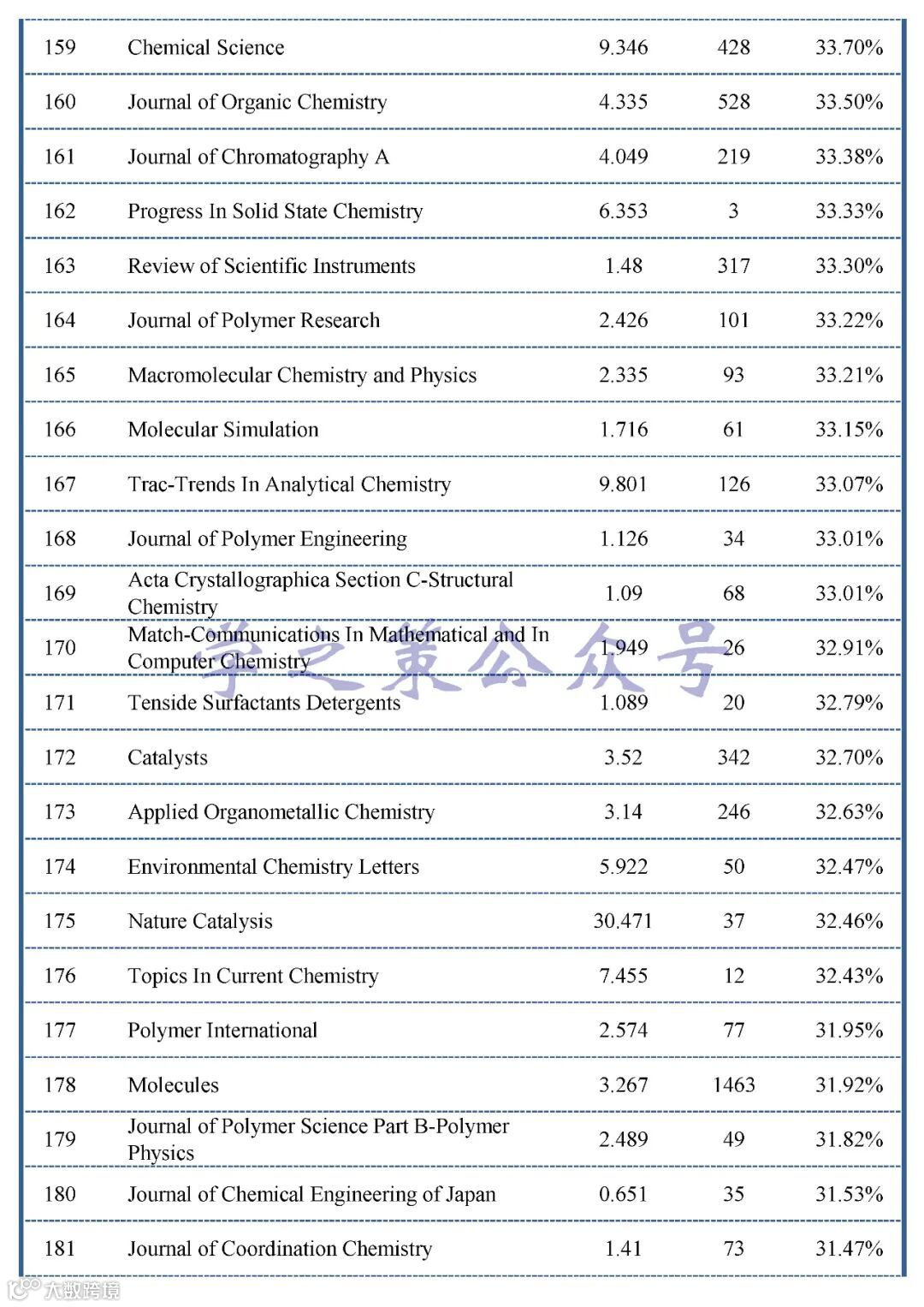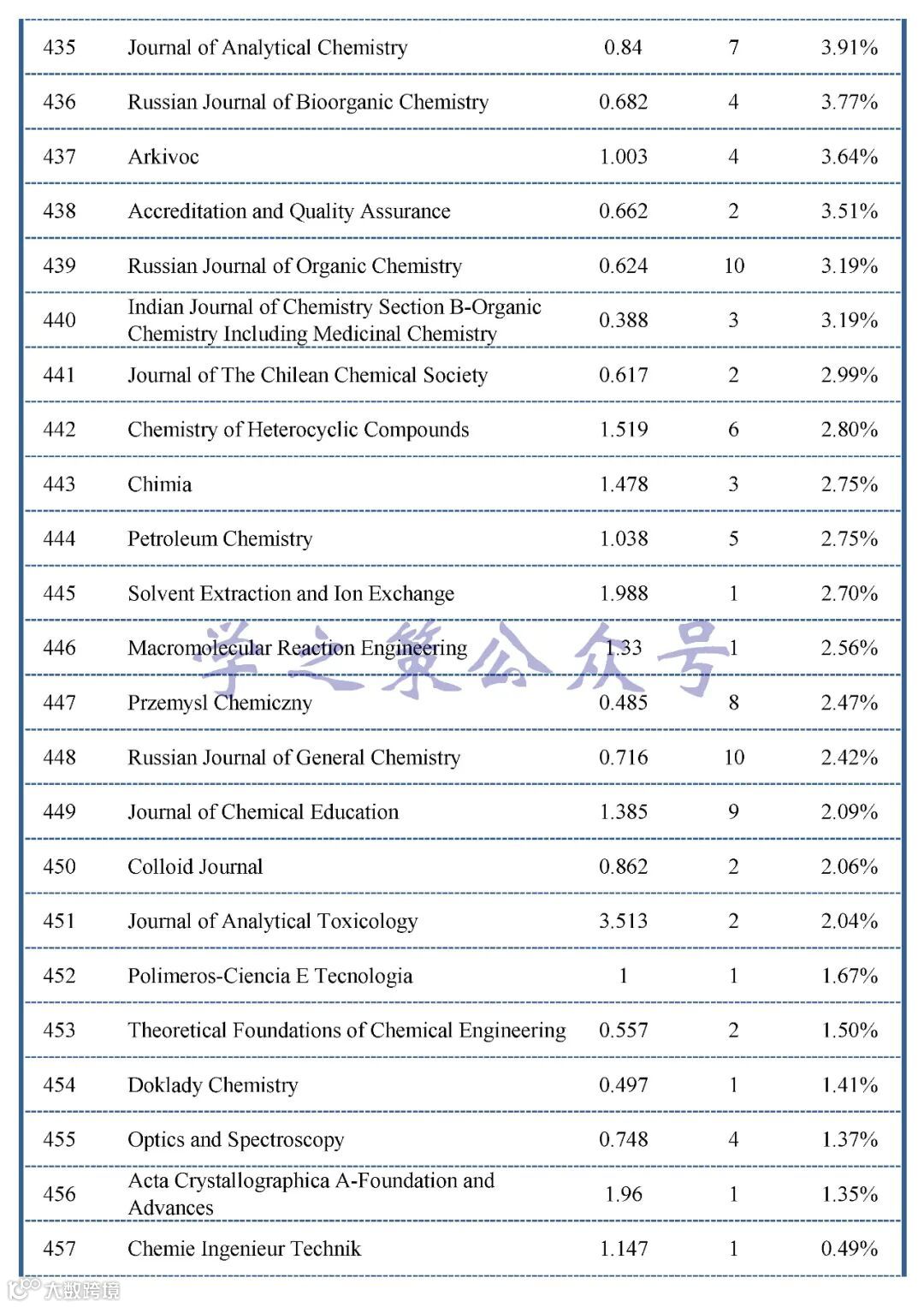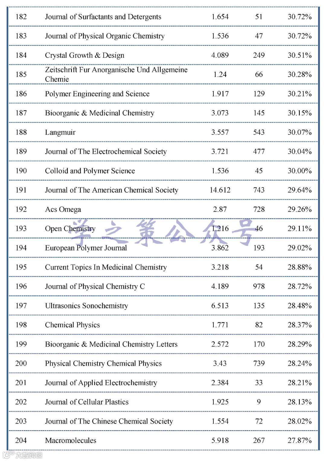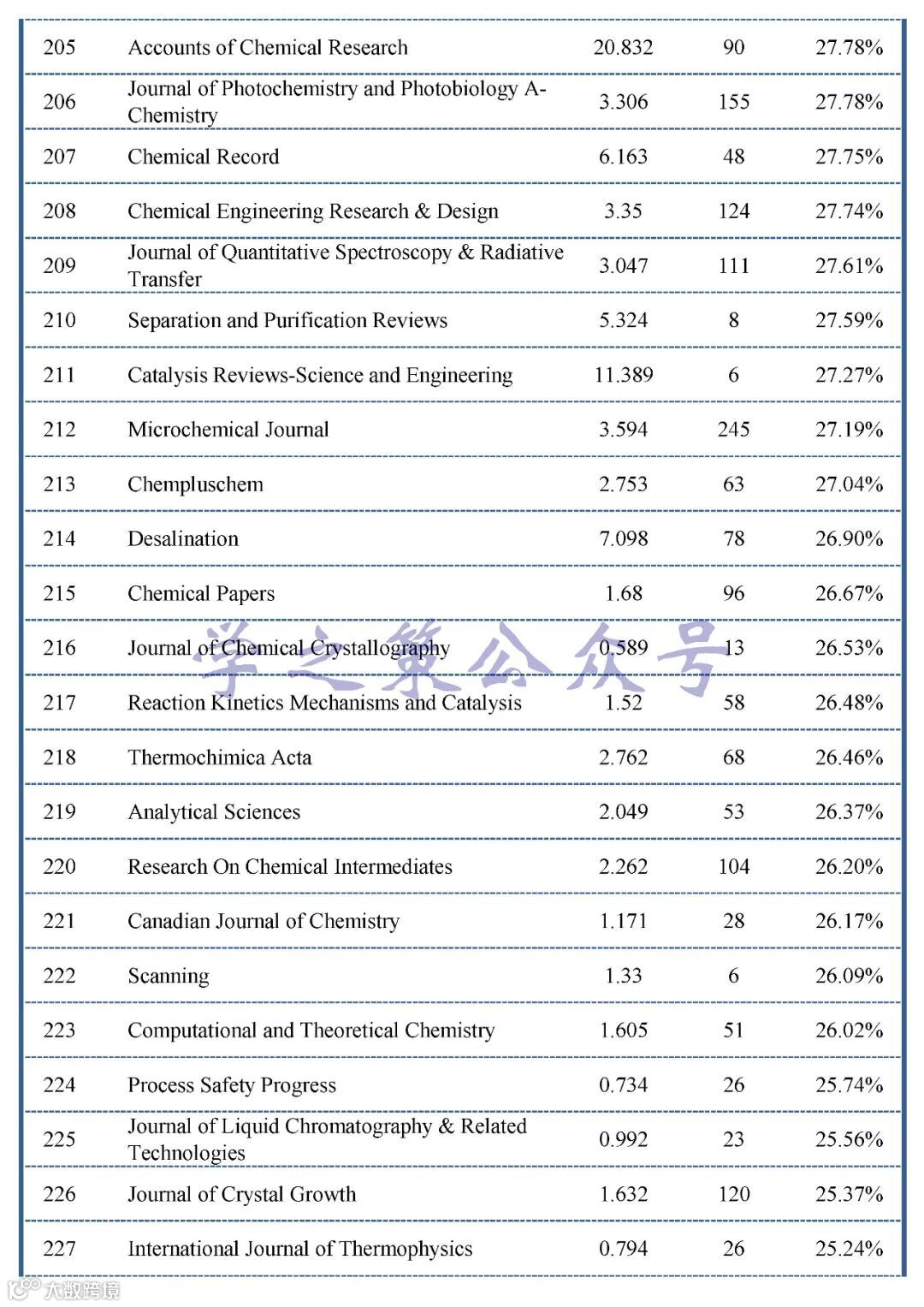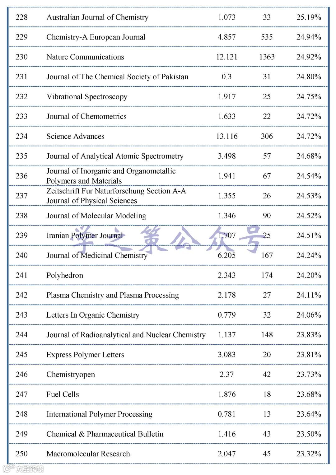 一些国人比较关注的期刊,Applied Catalysis B-Environmental为67%,JCIS为60.47%,Chem为51.72%,CSR为44.81%,EES为39.93%,Angew为39.47%,JACS为29.64%。