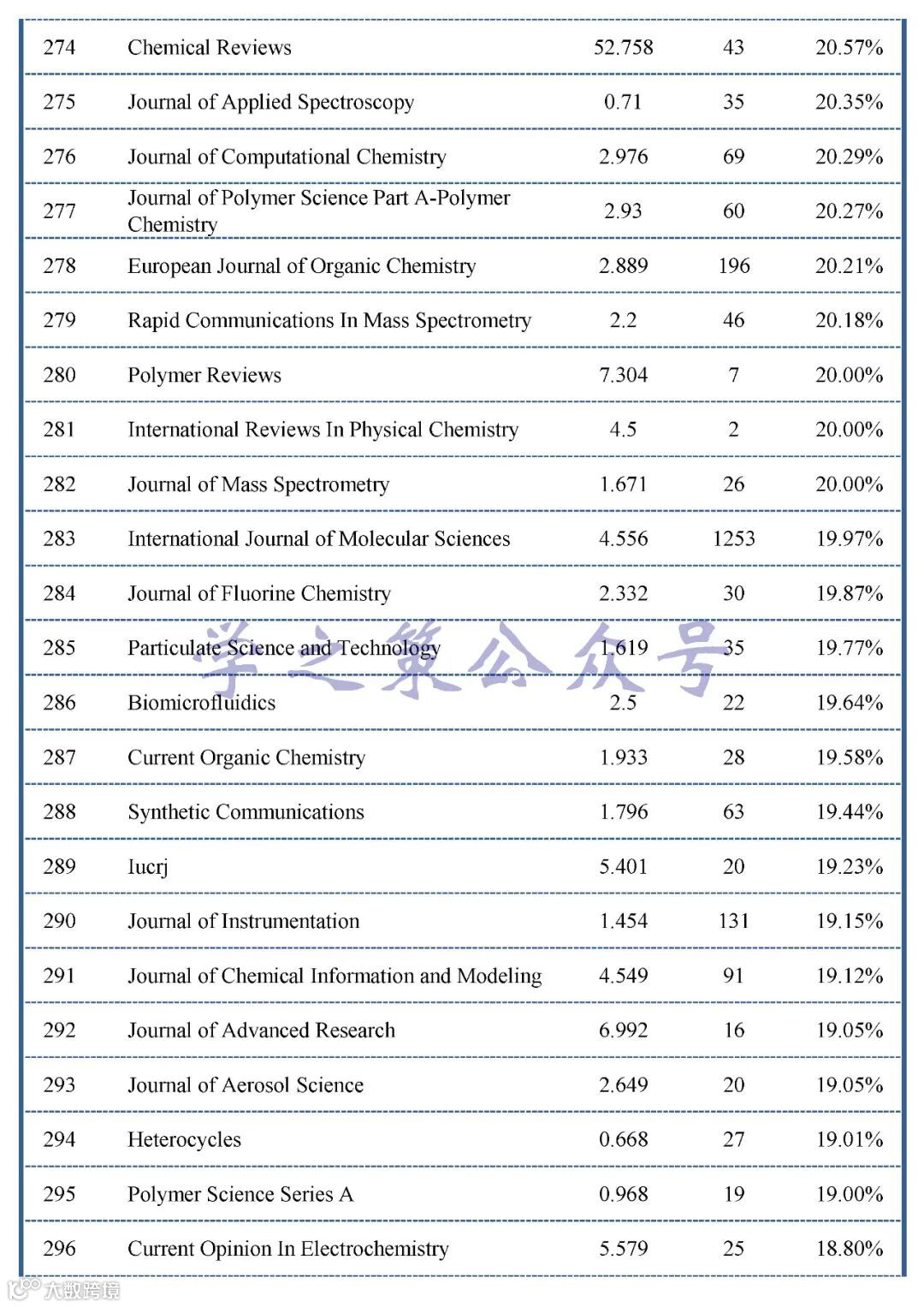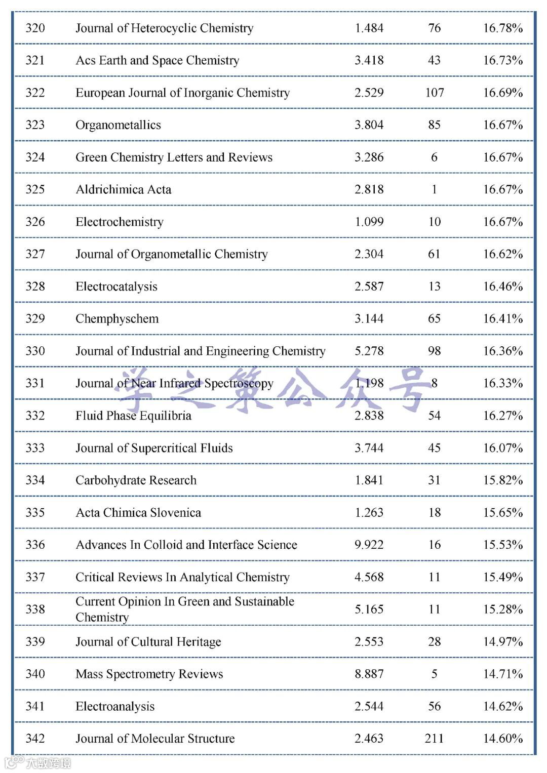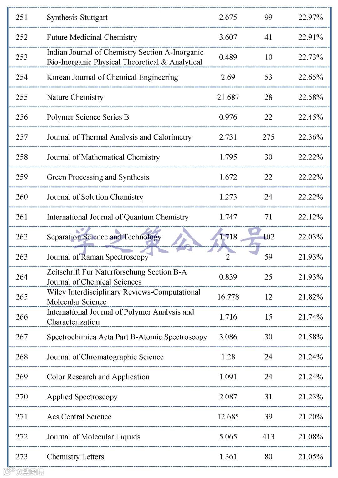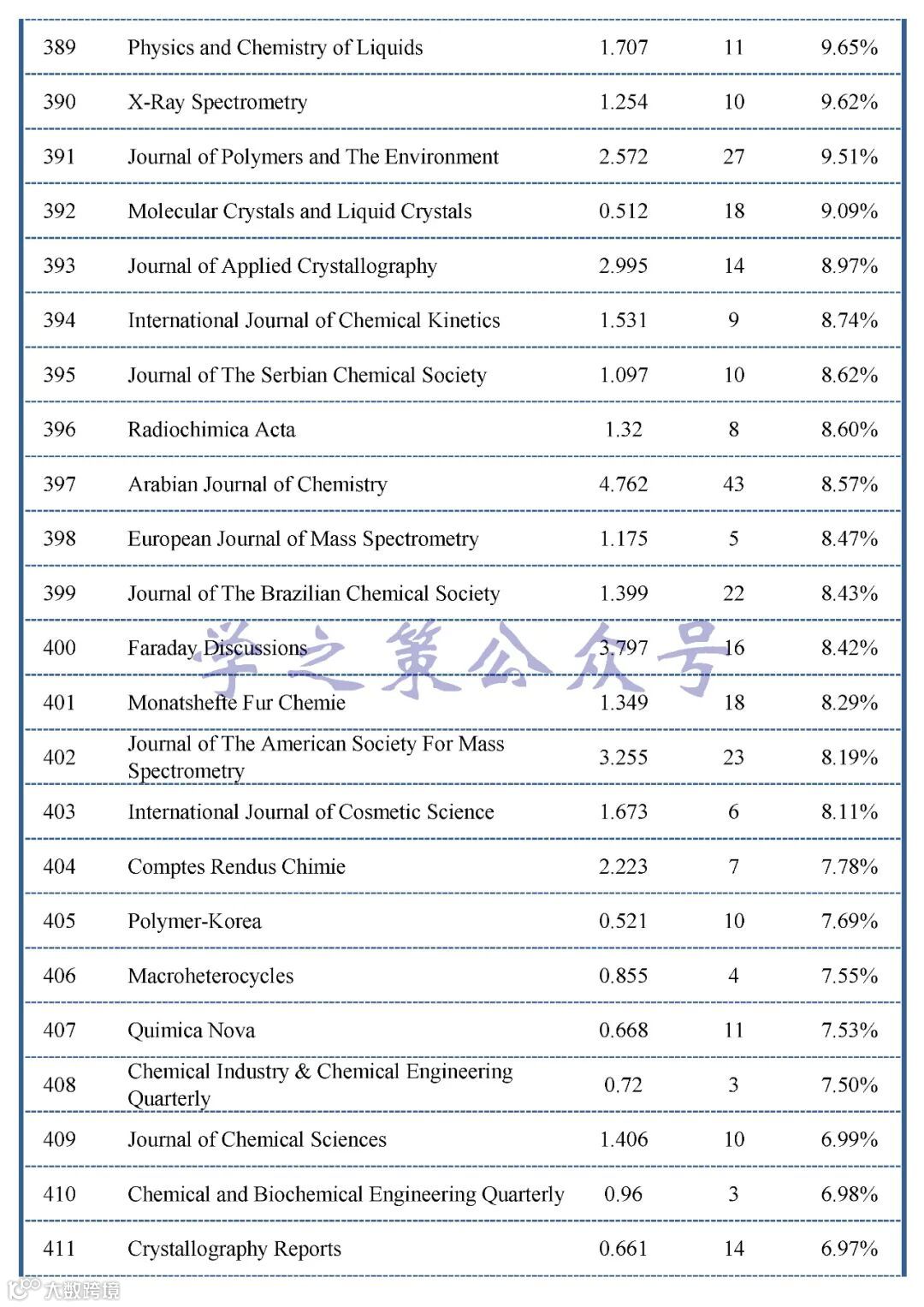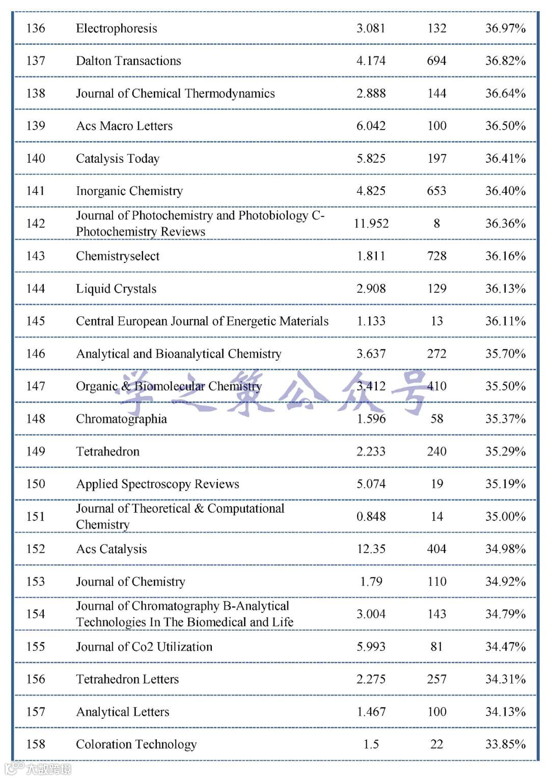一些国人比较关注的期刊,Applied Catalysis B-Environmental为67%,JCIS为60.47%,Chem为51.72%,CSR为44.81%,EES为39.93%,Angew为39.47%,JACS为29.64%。
