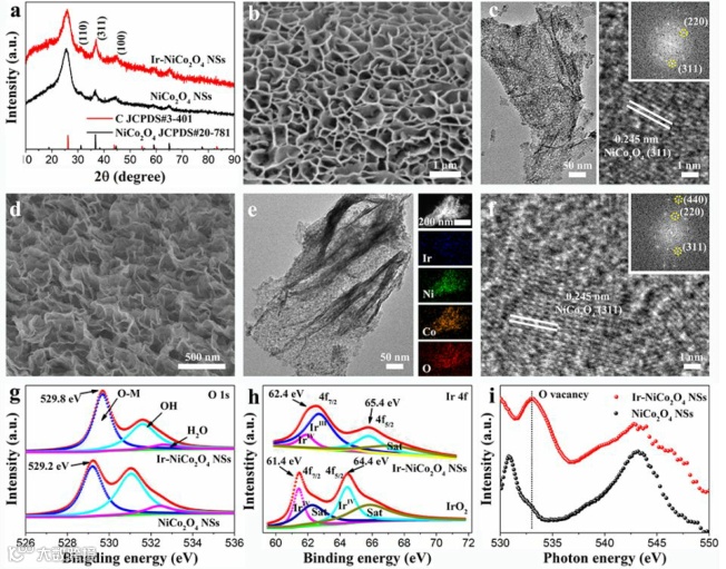 要点三:这种铱和钴位置之间的协同相互激活对于减轻普通钴位置在传统的镍钴氧催化体系中的过氧化或化合价不稳定性起着关键作用。所设计的策略为制备具有不饱和金属表面的2D金属纳米材料提供了一条有前途的途径,它将增强本征活性和选择性,可用于各种能量转换反应。