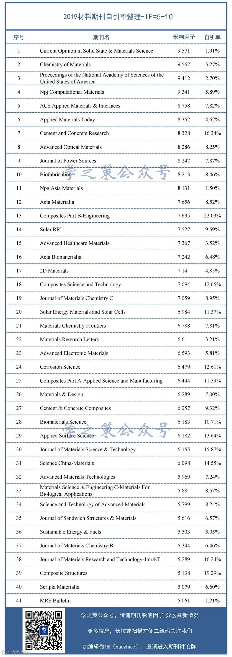 今日观察:材料期刊自引率