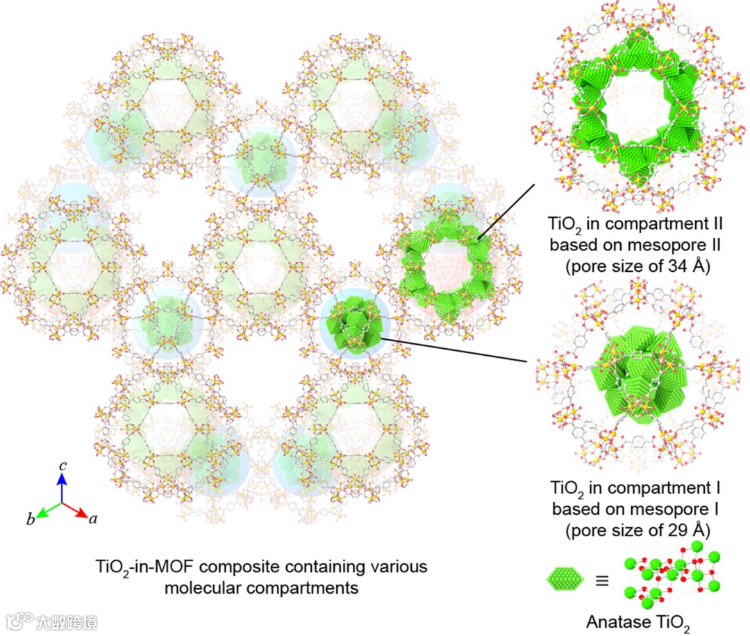 导读:该工作提出了一种在MOF材料中制造“分子隔间的策略,在MOF材料和衍生物材料的不同孔洞中生长TiO2,这种划分导致了光电转换材料TiO2与MOF材料中催化金属团簇之间的协同作用,加速了对CO2光催化还