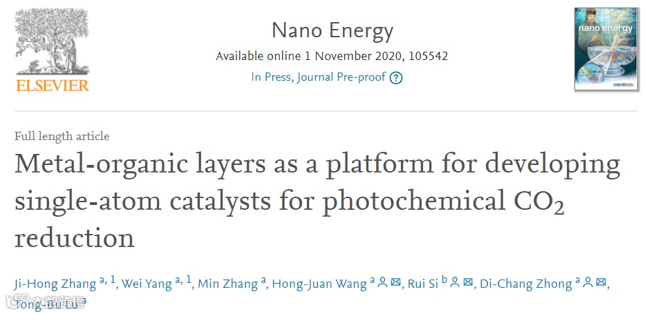 Nano Energy:金属有机层上的单原子,用于光催化CO2还原 科学材料站
