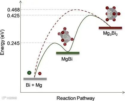 镁离子电池(MIBs)中的Mg/Bi电池目前发展缓慢,所开发的材料在无锂电解液中表现出较差的速率和循环性能。鉴于此,本研究制备了一种介孔Bi纳米片(p-Bi NS),并提出了一种新的Mg/Bi电池合金化反应机理。利用synchrotron‐based operando XRD,NEXAFS和拉曼光谱技术检测出MgBi中间相, 此中间相为金属导体,可提高材料导电性,较小的体积膨胀率使其可作为体积变化缓冲物质,降低反应能垒,具有良好的动力学性能。Mg/Bi电池体系合金化/脱合金过程可以描述为可逆的两步反应:Bi ↔ MgBi↔Mg3Bi2。p-Bi NS的纳米工程设计为其在腐蚀性镁基电解液中的应用提供了一种实用的新方法。