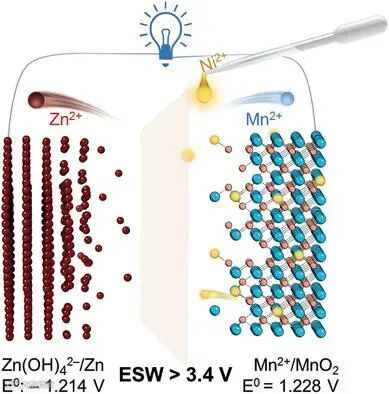 锌基二次电池的实际应用受到能量和功率密度的限制,这会导致其输出平台电压不足和动力学缓慢。本研究基于其课题组前期第一代电解锌锰电池的研究,设计了一种具有更高电压平台的第二代电解锌锰电池:可充电锌锰混合水系电池(Zn–Mn HAB),具有快速的反应动力学(50C,60 s放电),电化学稳定性窗口可扩展到3.4 V以上,以及19 kW kg−1的功率密度。同步辐射及密度泛函理论(DFT)计算说明引入的强负电性Ni的活性电子态和电荷离域增强。通过对反应路径的模拟,证实了掺杂的Ni周围的氧位点的电荷转移增强了催化电解动力学。这些发现促进了水系电池的发展应用。