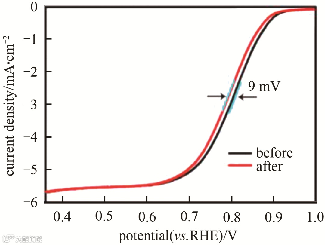 图5 NiCo2O4@N-CNWs经过5000次循环后的LSV图