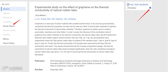 选中一篇文献,如果右边是如下所示的图标,那么说明可以找到该文献资源,还可以点击左侧“Similar Papers”查找与之相关的文献内容。