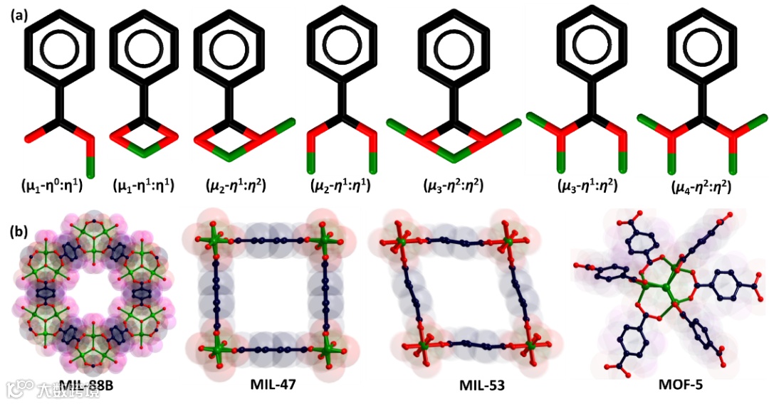 羧酸盐基MOF的配位类型与合成方法:常见的羧酸盐基配体可分为脂肪族羧酸,芳香族羧酸(包括单环和多环),芳香族又包含额外官能团的羧酸,含氮/氧/硫等杂环羧酸,以及混合型羧酸配体。目前主要的合成方法包括水热/溶剂热法,声化学法,微波热法,电化学方法等。本文对各个合成方法的优劣以及文献实例作了简要总结。